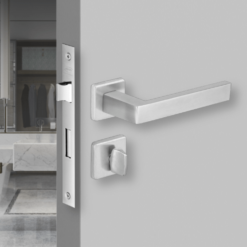 - Estética sofisticada: Acabamento cromado fosco que valoriza qualquer porta.
